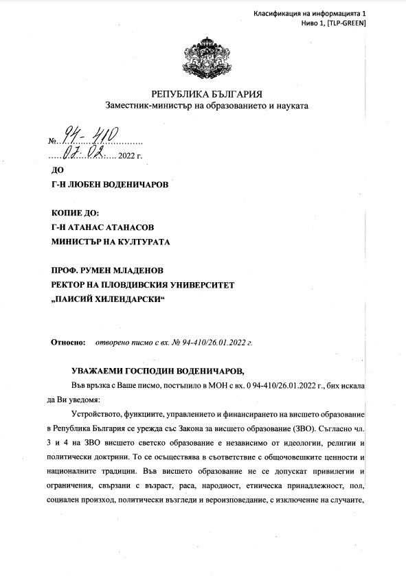 ПРИПОМНЯМЕ НАШЕТО ПИСМО, НА КОЕТО ГОРНОТО Е "ОТГОВОР":